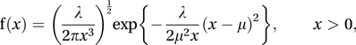 A continuous distribution with probability density function f is given bywhere μ>0, λ>0 . The distribution has mean μ, variance μ3/λ, and mode